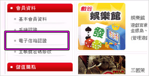 1.登入會員中心後,請用滑鼠點選畫面左邊的「電子信箱認證」。