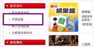 1.登入會員中心後,請用滑鼠點選畫面左邊的「手機認證」。