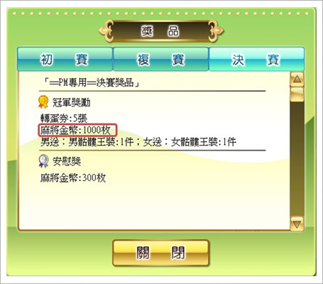 無雙彩金為決賽冠軍玩家所獲得的獎勵,無雙彩金為玩家初賽門票金額扣除系統抽成後64倍的金額。因此無雙彩金會依據初賽門票金額而有所不同,並且只要獲得決賽冠軍就能獲得。所以參加門票越高的比賽,贏走無雙彩金的金額也就越多。